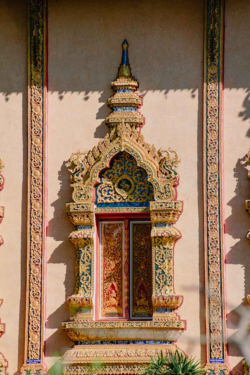 • อุโบสถสไตล์ล้านนา ประดับลวดลายงดงาม ฝ้าเพดานและเสาเขียนตกแต่งอย่างประณีต